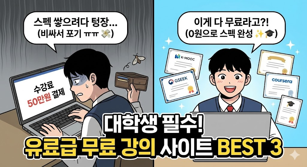 1. 서론: 스펙 쌓기도 '정보력' 싸움이다! "방학 때 코딩 좀 배워볼까?", "마케팅 실무 강의 들어볼까?" 하고 찾아보면 수십만 원짜리 유료 강의가 수두룩합니다. 알바비로 등록금 내기도 벅찬데, 스펙 쌓는 데까지 큰돈을 쓰려니 부담되시죠? 하지만 조금만 검색해보면 정부나 지자체, 대학에서 제공하는 '무료'지만 '유료급 퀄리티'를 자랑하는 알짜배기 강의들이 정말 많습니다. 오늘은 아는 사람만 몰래 듣고 스펙 쌓는다는 대학생 필수 무료 교육 사이트 3대장을 공개합니다. 이번 겨울방학, 돈 아끼고 스펙은 올려보세요!
