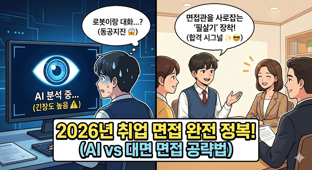 1. 서론: "서류 합격 축하합니다! 다음은 면접입니다." 이 메일을 받았을 때의 기분, 설렘 반 두려움 반이죠? "나 말주변 없는데 어떡하지?", "AI 면접은 또 뭐야? 카메라 보고 혼자 말하라고?" 수많은 경쟁자를 뚫고 얻은 소중한 기회, 말 한마디 실수로 날려버릴 순 없습니다. 면접은 말을 청산유수처럼 잘하는 사람을 뽑는 자리가 아닙니다. **'우리 회사와 함께 일하고 싶은 사람'**을 찾는 자리입니다. 오늘은 2026년 채용의 핵심인 AI 면접과 전통적인 대면 면접을 아우르는 합격 전략을 알려드립니다.