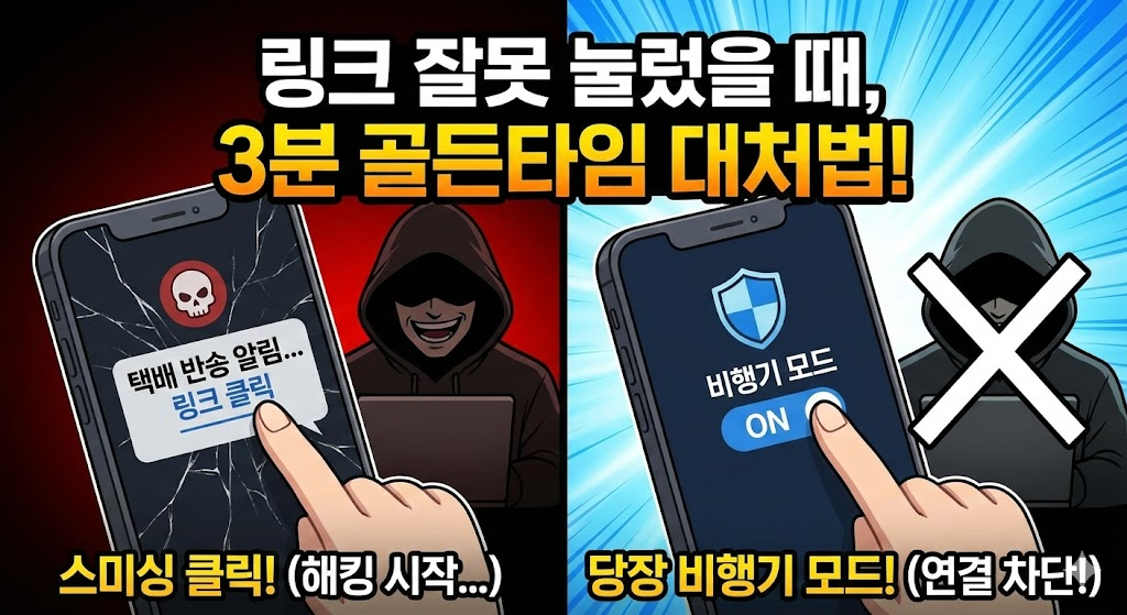5. 결론 "설마 내가 당하겠어?" 하는 방심이 가장 위험합니다. 모르는 번호로 온 링크(URL)는 절대 누르지 말고, 만약 눌렀다면 오늘 알려드린 [비행기 모드 -> 악성 앱 삭제 -> 지급 정지] 3단계를 꼭 기억하세요. 이 글을 가족 단톡방에 공유해서 소중한 사람들을 지켜주세요!